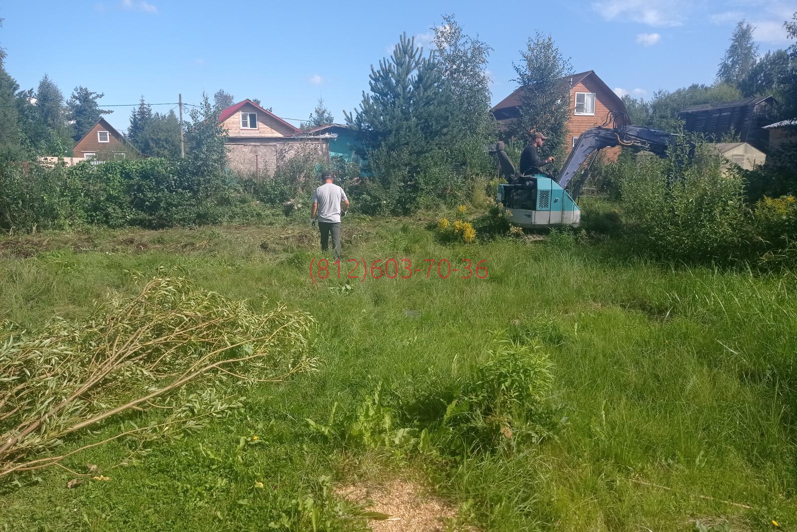 2022-10-04 Подравнивание заросшего дачного участка в деревне Трудовик, Ломоносовский район Ленинградской области. Расчистка от
