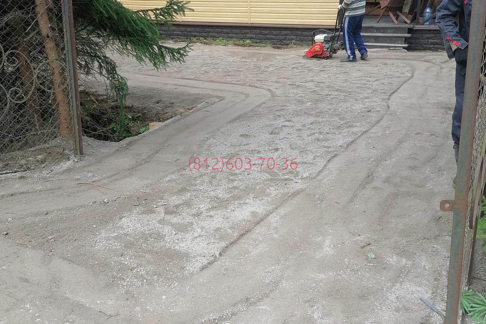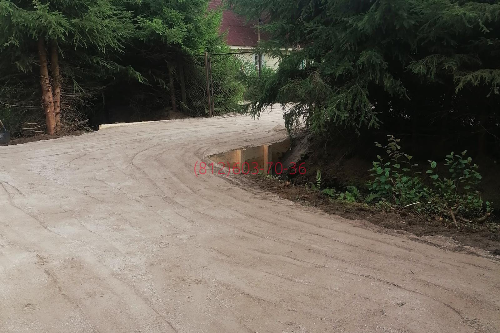 Реконструкция старого заезда, отсыпка парковки на дачном участке в Рощино, Выборгский район Ленинградской области
