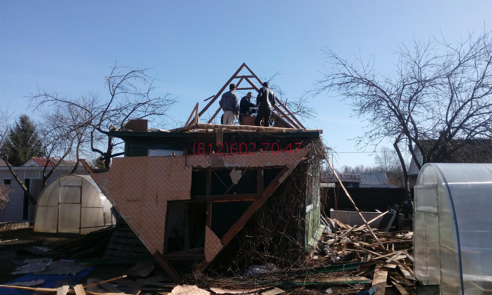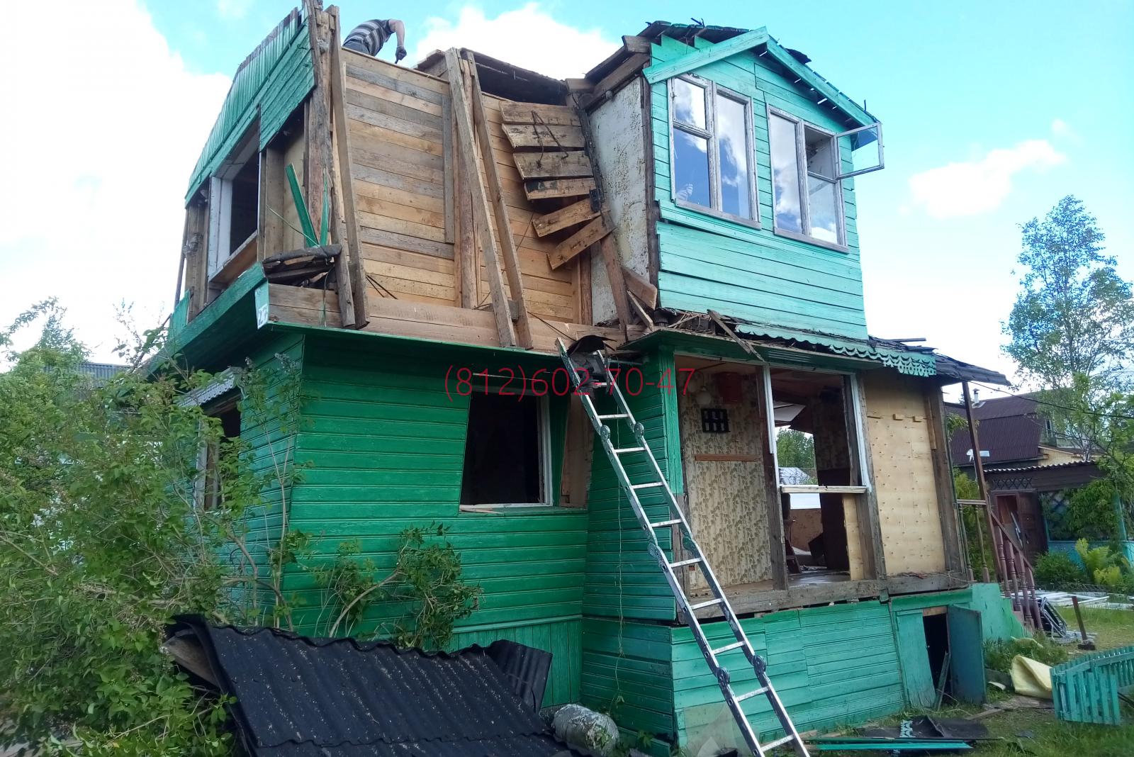 2018-06-13 Ленинградская область, Гатчинский район, поселок Кобрино, снт Флора нужно было разобрать в ручную до фундамента и вывезти 2-х этажный каркасно щитовой дом 7*5
