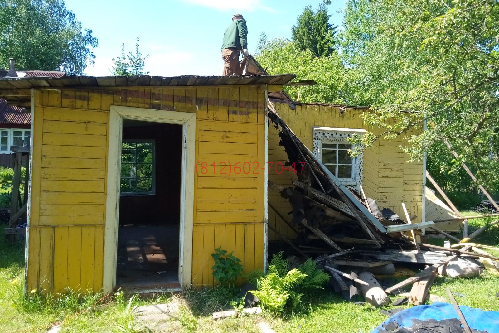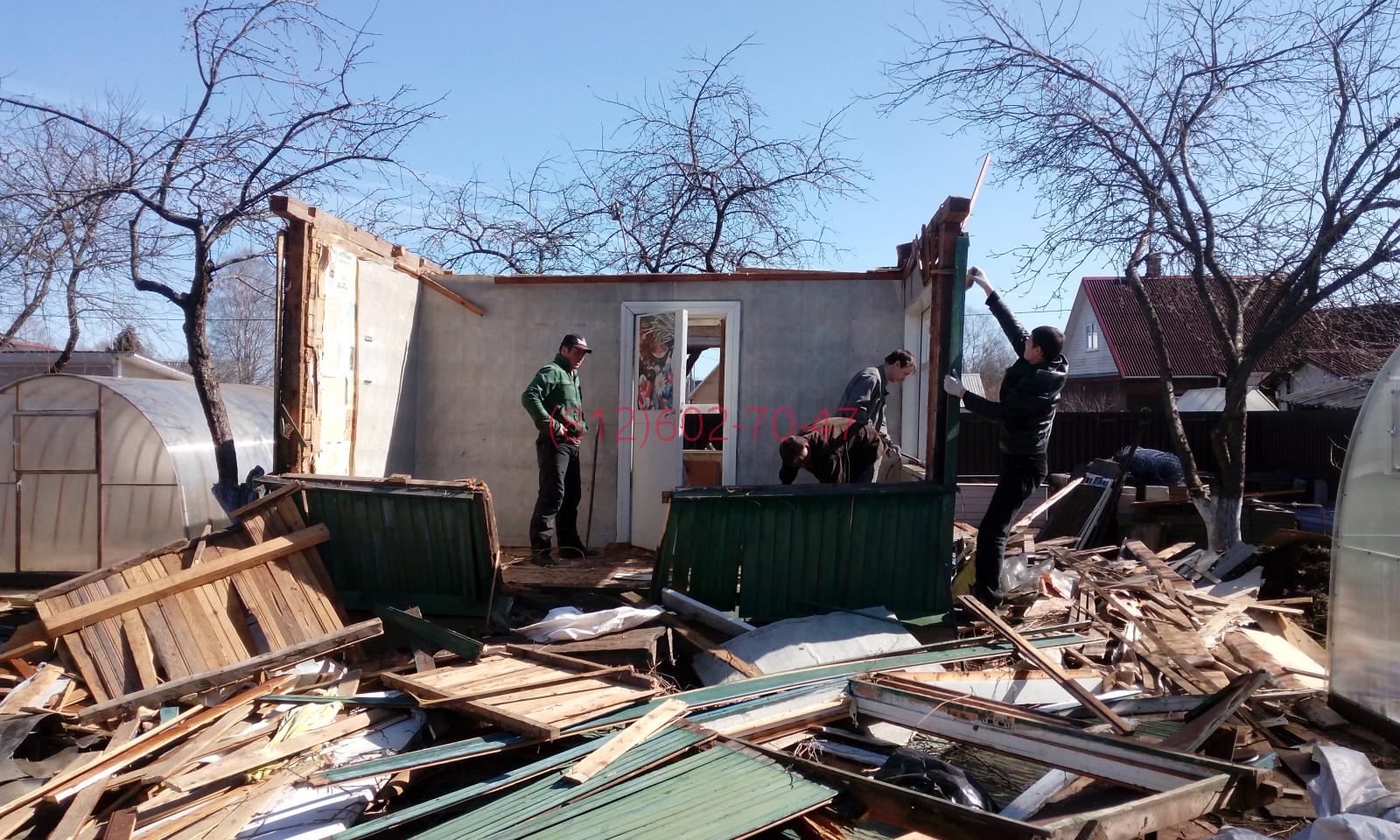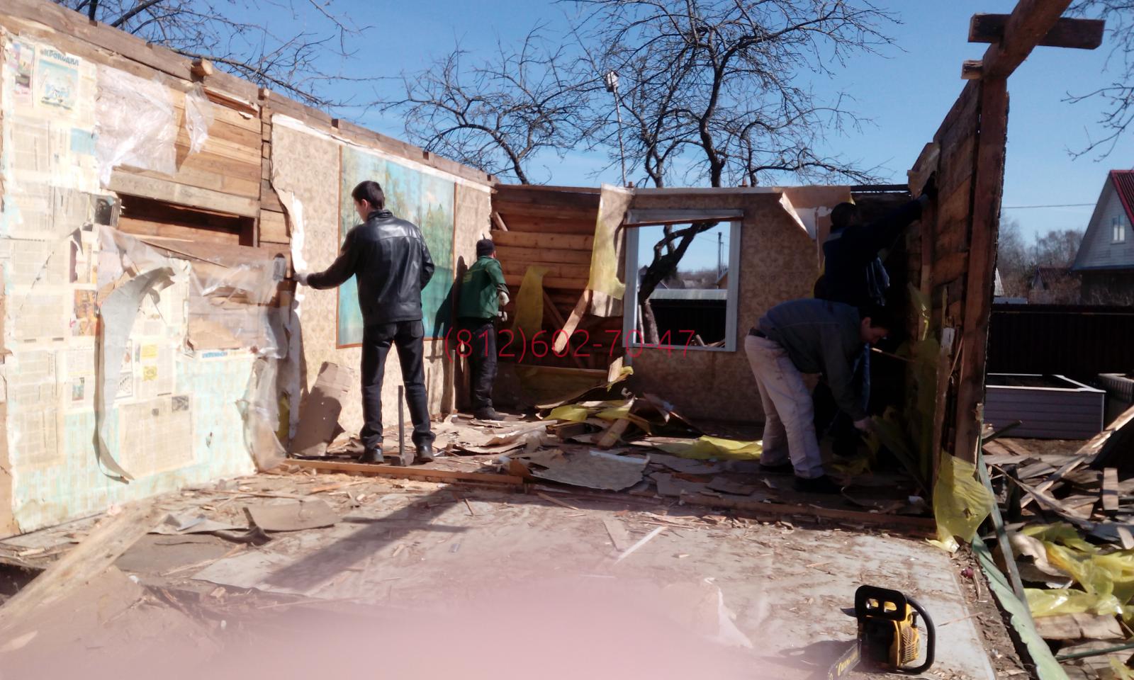 Ленинградская область, Гатчинский район, поселок Кобрино, снт Флора нужно было разобрать в ручную до фундамента и вывезти 2-х этажный каркасно щитовой дом 7*5