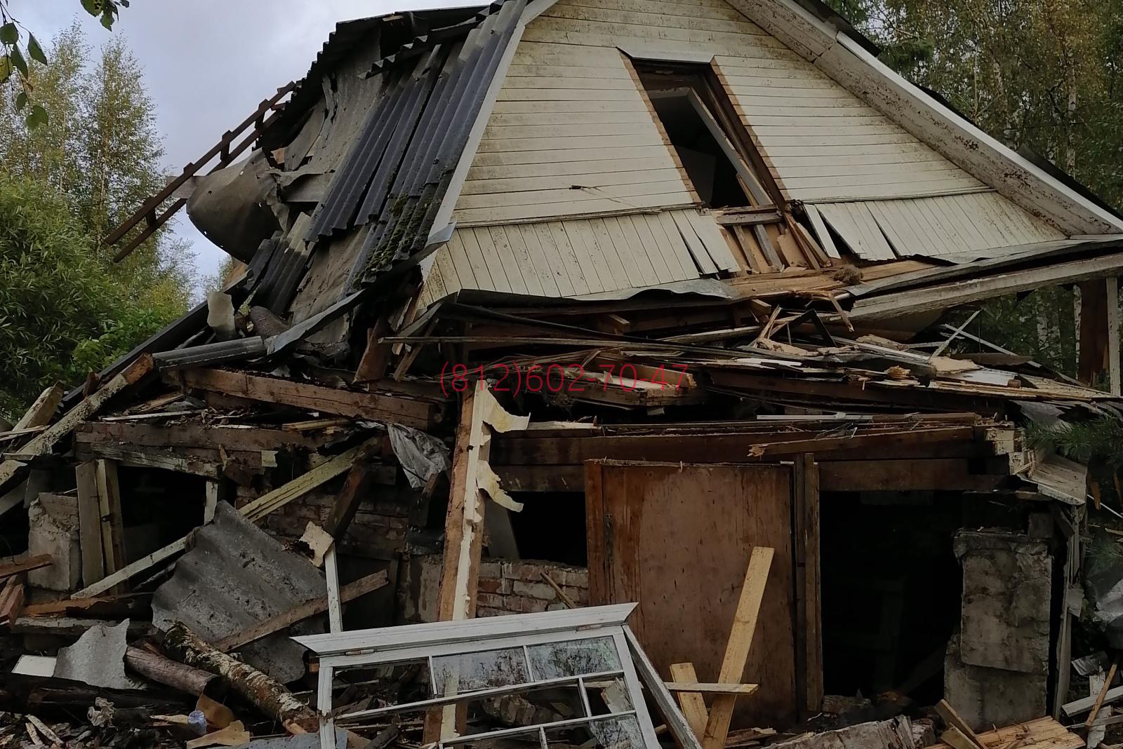 2020-07-01 Демонтаж деревянного дома с цокольным этажом в Кобралово, Гатчинский район Ленинградской области.